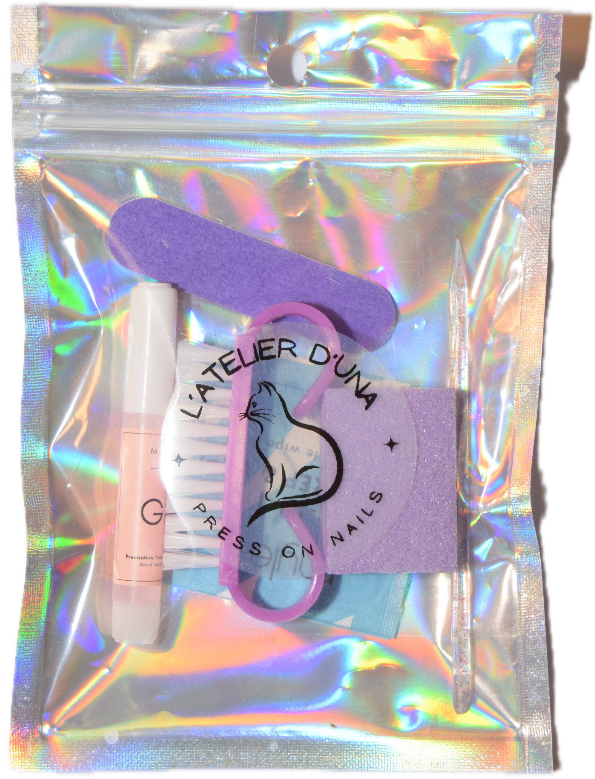 - 1 mini lime à ongles, elle permettra de limer votre ongle naturel pour que sa forme s'adapte aux press on nails.